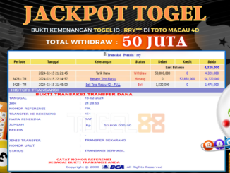 TOGEL88 JACKPOT TOGEL di TOTOMACAU 4D Rp 50.000.000,- LUNAS