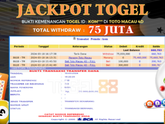 TOGEL88 JACKPOT TOGEL DI TOTO MACAU 4D Rp 75.000.000,- LUNAS MEMBER TOGEL88 MENERIMA PELUNASAN KEMENANGAN JACKPOT TOGEL DI TOTO MACAU 4D Rp 75.000.000,- LUNAS “TOGEL88 […]