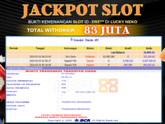 TOGEL88 JACKPOT SLOT DI LUCKY NEKO Rp 55.000.000,- LUNAS