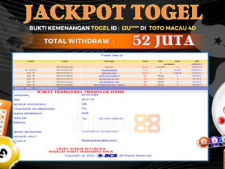 TOGEL88 JACKPOT TOGEL DI TOTO MACAU 4D Rp 52.000.000,- LUNAS MEMBER TOGEL88 MENERIMA PELUNASAN KEMENANGAN JACKPOT TOGEL DI TOTO MACAU 4D Rp 52.000.000,- LUNAS “TOGEL88 […]