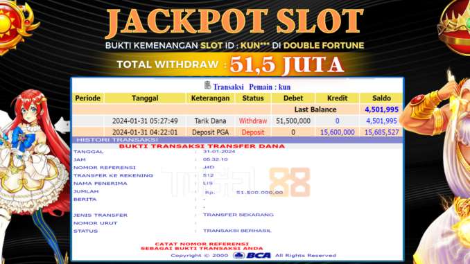 TOGEL88 JACKPOT SLOT DI DOUBLE FORTUNE Rp 51.500.000,- LUNAS