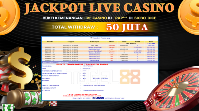 TOGEL88 JACKPOT LIVE CASINO di SICBO DICE Rp 50.000.000,- LUNAS