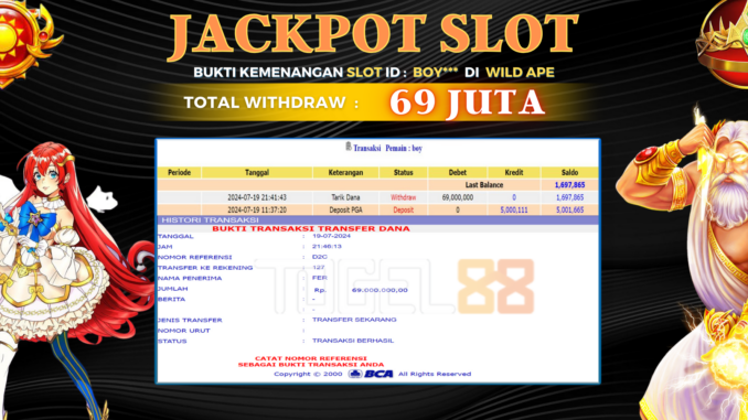 TOGEL88 JACKPOT SLOT DI WILD APE Rp 69.000.000,- LUNAS