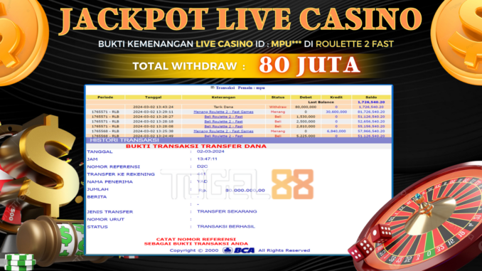 TOGEL88 JACKPOT LIVE CASINO DI ROULETTE 2 FAST Rp 80.000.000,- LUNAS