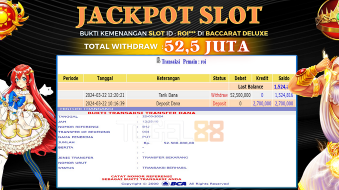 TOGEL88 JACKPOT SLOT DI BACCARAT DELUXE Rp 52.500.000,- LUNAS