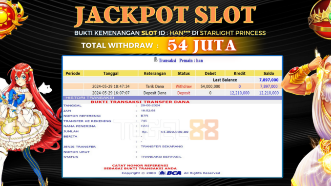TOGEL88 JACKPOT SLOT DI STARLIGHT PRINCESS Rp 54.000.000,- LUNAS