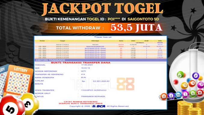 TOGEL88 JACKPOT TOGEL DI SAIGONTOTO 5D Rp 53.500.000,- LUNAS
