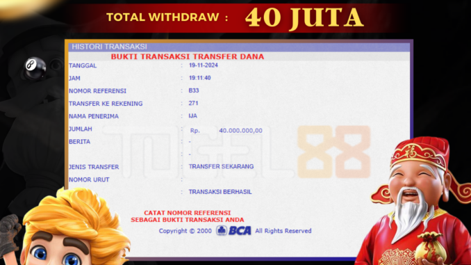 TOGEL88 mengucapkan selamat kepada user id : IJA*** yang telah berhasil mendapatkan jackpot pada permainan SLOT DI GATES OF GATOT KACA Kemenangan sebesar Rp 40.000.000,-. telah dibayarkan LUNAS oleh pihak TOGEL88 kepada pemilik user id setelah yang bersangkutan mengisi formulir withdraw. Proses pencairan dana berlangsung sangat cepat hanya dalam waktu 5-10 menit sudah berada dalam rekening pemilik user id. Bukti transfer yang dapat anda lihat adalah bukti SAH / VALID yang langsung di dapatkan melalui bukti transaksi dari Bank yang digunakan untuk pengiriman dana pada rekening pemilik user id. Terima kasih kami sampaikan kepada para pengguna setia TOGEL88 yang telah menggunakan situs kami, sebagai Bandar Terpercaya yang pastinya membayar semua kemenangan member hingga lunas. Apakah TOGEL88 PENIPU ? Reputasi “TOGEL88 TERPERCAYA” sudah sangat melekat. puluhan hingga ratusan ribu pengguna setia TOGEL88 tetap menggunakan situs terbesar dan terbaik di Indonesia ini. Hapus rasa was-was dan khawatir anda, kemenangan anda berapapun PASTI dibayarkan hingga lunas.