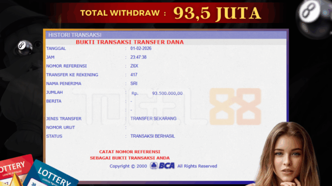 TOGEL88 mengucapkan selamat kepada user id : JIM*** yang telah berhasil mendapatkan jackpot pada permainan TOGEL DI HONGKONG LOTTO. Kemenangan sebesar Rp 93.500.000,-. telah dibayarkan LUNAS oleh pihak TOGEL88 kepada pemilik user id setelah yang bersangkutan mengisi formulir withdraw. Proses pencairan dana berlangsung sangat cepat hanya dalam waktu 5-10 menit sudah berada dalam rekening pemilik user id. Bukti transfer yang dapat anda lihat adalah bukti SAH / VALID yang langsung di dapatkan melalui bukti transaksi dari Bank yang digunakan untuk pengiriman dana pada rekening pemilik user id. Terima kasih kami sampaikan kepada para pengguna setia TOGEL88 yang telah menggunakan situs kami, sebagai Bandar Terpercaya yang pastinya membayar semua kemenangan member hingga lunas. Apakah TOGEL88 PENIPU ? Reputasi “TOGEL88 TERPERCAYA” sudah sangat melekat. puluhan hingga ratusan ribu pengguna setia TOGEL88 tetap menggunakan situs terbesar dan terbaik di Indonesia ini. Hapus rasa was-was dan khawatir anda, kemenangan anda berapapun PASTI dibayarkan hingga lunas.