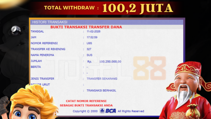 TOGEL88 mengucapkan selamat kepada user id : SUS*** yang telah berhasil mendapatkan jackpot pada permainan SLOT DI LAUGHING BUDDHA. Kemenangan sebesar Rp 100.250.000,-. telah dibayarkan LUNAS oleh pihak TOGEL88 kepada pemilik user id setelah yang bersangkutan mengisi formulir withdraw. Proses pencairan dana berlangsung sangat cepat hanya dalam waktu 5-10 menit sudah berada dalam rekening pemilik user id. Bukti transfer yang dapat anda lihat adalah bukti SAH / VALID yang langsung di dapatkan melalui bukti transaksi dari Bank yang digunakan untuk pengiriman dana pada rekening pemilik user id. Terima kasih kami sampaikan kepada para pengguna setia TOGEL88 yang telah menggunakan situs kami, sebagai Bandar Terpercaya yang pastinya membayar semua kemenangan member hingga lunas. Apakah TOGEL88 PENIPU ? Reputasi “TOGEL88 TERPERCAYA” sudah sangat melekat. puluhan hingga ratusan ribu pengguna setia TOGEL88 tetap menggunakan situs terbesar dan terbaik di Indonesia ini. Hapus rasa was-was dan khawatir anda, kemenangan anda berapapun PASTI dibayarkan hingga lunas.