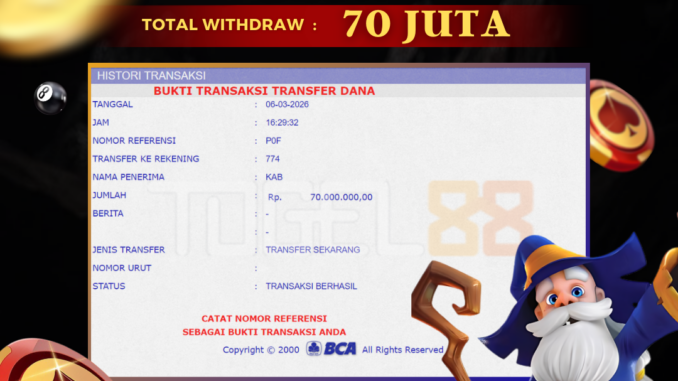 TOGEL88 mengucapkan selamat kepada user id : PIN*** yang telah berhasil mendapatkan jackpot pada permainan LIVE CASINO DI BACCARAT. Kemenangan sebesar Rp 70.000.000,-. telah dibayarkan LUNAS oleh pihak TOGEL88 kepada pemilik user id setelah yang bersangkutan mengisi formulir withdraw. Proses pencairan dana berlangsung sangat cepat hanya dalam waktu 5-10 menit sudah berada dalam rekening pemilik user id. Bukti transfer yang dapat anda lihat adalah bukti SAH / VALID yang langsung di dapatkan melalui bukti transaksi dari Bank yang digunakan untuk pengiriman dana pada rekening pemilik user id. Terima kasih kami sampaikan kepada para pengguna setia TOGEL88 yang telah menggunakan situs kami, sebagai Bandar Terpercaya yang pastinya membayar semua kemenangan member hingga lunas. Apakah TOGEL88 PENIPU ? Reputasi “TOGEL88 TERPERCAYA” sudah sangat melekat. puluhan hingga ratusan ribu pengguna setia TOGEL88 tetap menggunakan situs terbesar dan terbaik di Indonesia ini. Hapus rasa was-was dan khawatir anda, kemenangan anda berapapun PASTI dibayarkan hingga lunas.