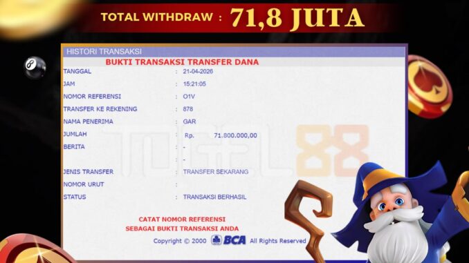 TOGEL88 mengucapkan selamat kepada user id : FER*** yang telah berhasil mendapatkan jackpot pada permainan LIVE CASINO DI BACCARAT. Kemenangan sebesar Rp 71.800.000,-. telah dibayarkan LUNAS oleh pihak TOGEL88 kepada pemilik user id setelah yang bersangkutan mengisi formulir withdraw. Proses pencairan dana berlangsung sangat cepat hanya dalam waktu 5-10 menit sudah berada dalam rekening pemilik user id. Bukti transfer yang dapat anda lihat adalah bukti SAH / VALID yang langsung di dapatkan melalui bukti transaksi dari Bank yang digunakan untuk pengiriman dana pada rekening pemilik user id. Terima kasih kami sampaikan kepada para pengguna setia TOGEL88 yang telah menggunakan situs kami, sebagai Bandar Terpercaya yang pastinya membayar semua kemenangan member hingga lunas. Apakah TOGEL88 PENIPU ? Reputasi “TOGEL88 TERPERCAYA” sudah sangat melekat. puluhan hingga ratusan ribu pengguna setia TOGEL88 tetap menggunakan situs terbesar dan terbaik di Indonesia ini. Hapus rasa was-was dan khawatir anda, kemenangan anda berapapun PASTI dibayarkan hingga lunas.