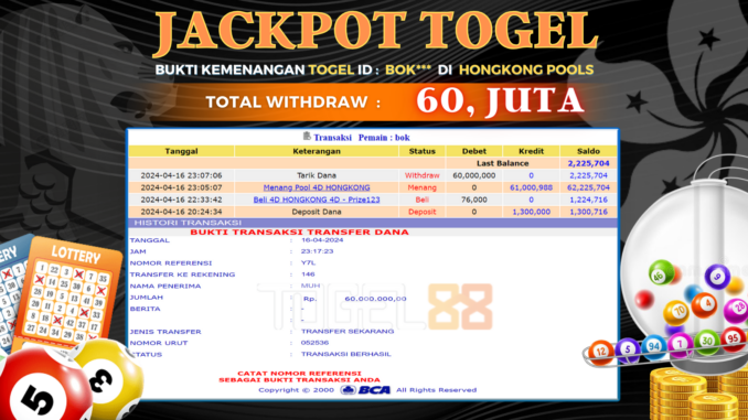 TOGEL88 JACKPOT TOGEL DI HONGKONG POOLS Rp 60.000.000,- LUNAS
