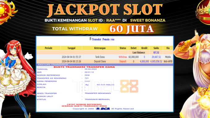 TOGEL88 JACKPOT SLOT DI SWEET BONANZA Rp 60.000.000,- LUNAS