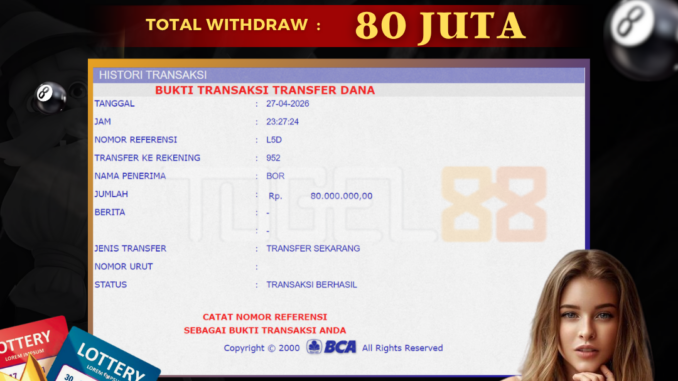 TOGEL88 JACKPOT TOGEL DI HONGKONG LOTTO Rp 80.000.000,- LUNAS